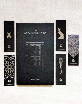 Our first set of Limited Edition Bookmarks — five elegant designs foil pressed on black card. Each bookmark is carefully metal-pressed to create a de-bossed, textured surface. These are medium sized bookmarks (90mm x 30mm), designed to fit into books and booklets of any size. Each set of five bookmarks consists of a Scarab, Tesselating Geometry, Tangram Cat, Whisk and Leaf Imprint bookmarks.